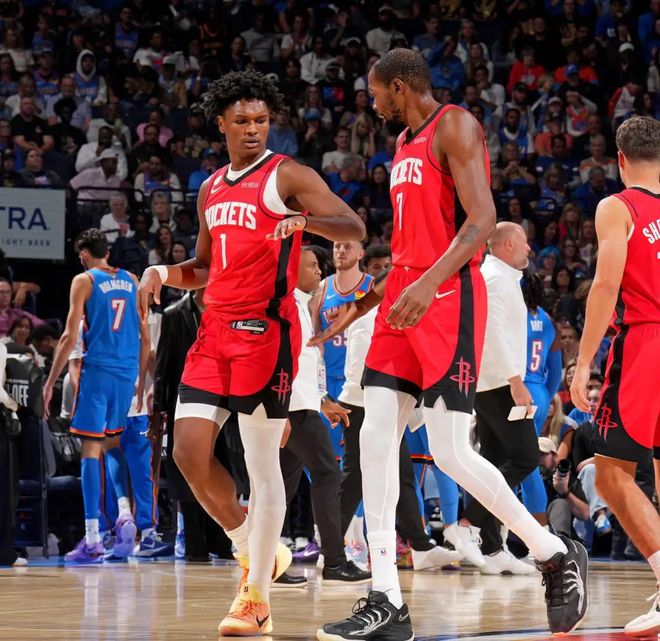 排名第三的球隊,是今年休賽期非?;钴S的休斯頓火箭隊,他們在休賽期交易得到了杜蘭特這位37歲的超級球星,同時在替補方面,還補充了卡佩拉、芬妮-史密斯等一眾悍將。